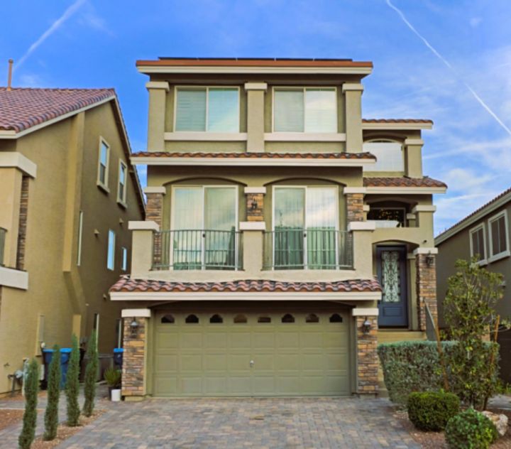We live in a quiet suburb in sunny Nevada in a planned community with many friendly neighbors who all look out for each other. Our cul-de-sac gets very little traffic, and we see all the neighborhood kids outside playing all the time. Our 3-story home was just built in 2019 and is about 3,200 square feet. The master suite, office, and 2 other bedrooms are on the third floor, and there is an extra downstairs master suite and living room, which makes things super easy for family when they visit. Skip has a workshop in the garage, while Jai rules the house’s outdoor spaces. The main floor is an open-concept area with a living room and dining room in the front and a big family room in the back that flows into the kitchen with a walk-in pantry. This is where we spend most of our time as a family, cooking, watching movies, listening to music, and hanging out together. Lots of natural light keeps our plants really happy, and the kitchen balcony overlooks our very green backyard with a great view of the distant mountains.